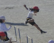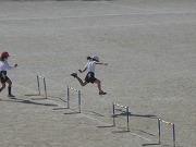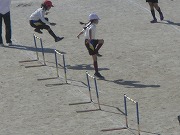 3年生の体育でハードルの練習が進んでいます。最初はハードル前ですくんでしまい、スピードが落ちてしまった子も多かったのですが、ずいぶん慣れてきて、スピードを保ったまま跳び越えられるようになってきました。
