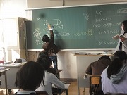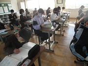 5年生が、円や正多角形などの図形の特徴を生かして、計算に取り組んでいました。例えば円に内接する正多角形は、中心から角に線を引けばいくつかの三角形に分かれます。しかもその三角形はすべて二等辺三角形なのです。図形を分割したり組み合わせたりして、計算しやすい形に直すことで、早くしかも正確に答えを出すことができるようになります。