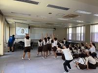 今日は久しぶりのハッピートーク朝礼を行いました。発声練習や体を動かすことを通して,自分の気持ちを明るくする方法を体験しました。