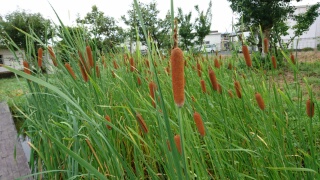 西川端小学校の花で紹介した蒲の穂がずいぶん成長してきました。