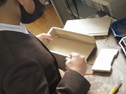 6年生のアートボックスが完成に近づいてきました。思い思いのデザインを彫刻刀で彫り、組み立てます。中にはオルゴールもセットするそうです。