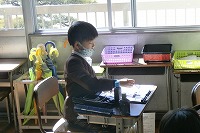 4年生が毛筆で「大地」という字を書いていました。左はらいや右はらいがうまく書けるととても格好いい字になりますね。