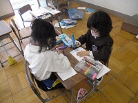 1年生は、あたらいい学級の係をきめ、役割についてみんなにお知らせする紙を作っていました。同じ係同士で集まって係の名前や内容、みんなに対するお願いを考えていました。