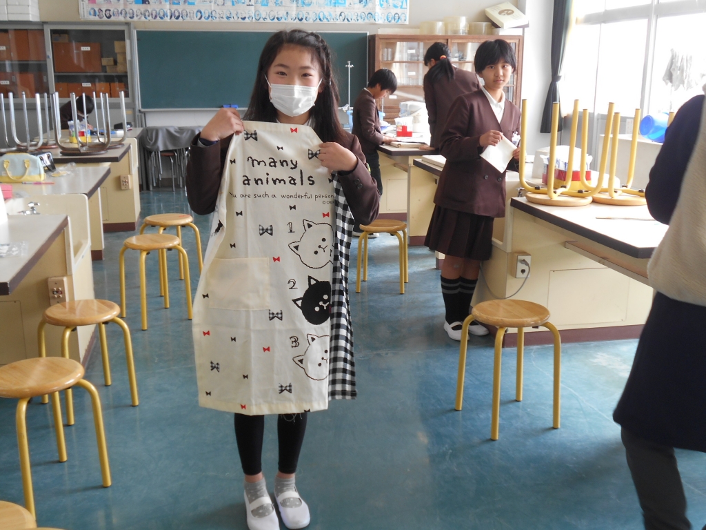 5年生は、エプロンが完成に近づいてきました。ポケットをつけたら出来上がりです。