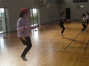 3年生が体育で縄跳びに取り組んでいました。先生の指示に従って、次から次へと様々な跳び方を50回とか100回とか30秒間連続でなど、どんどん変更しながら挑戦していました。