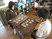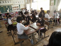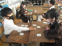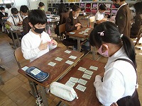 3年生が国語で百人一首をしていました。1年生の時から取り組んでいるので、多くの子が上の句を読んでいる途中で、素早く取り札を取ることができます。