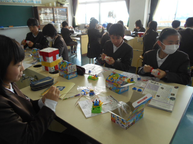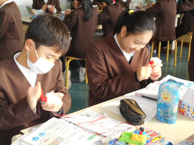 6年生は、理科の学習で、コンデンサーに電気をためる実験をしました。