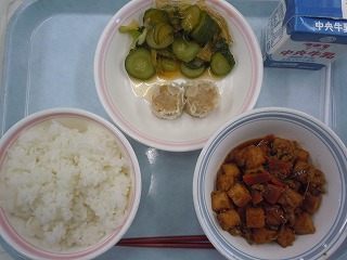 ご飯 牛乳 生揚げの中華炒め 焼売(しゅうまい) 糸寒天の黒酢漬け