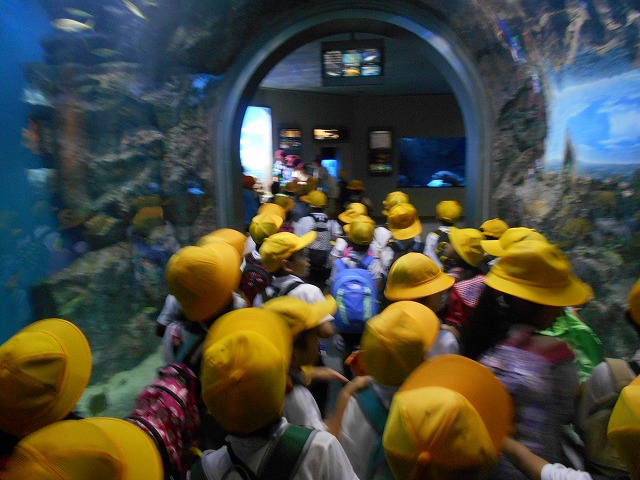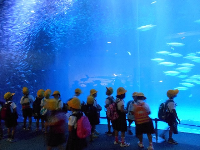 久しぶりによい天気になりました。天候に恵まれ、1・2・6年生は、校外学習に出かけました。1・2年生は、名古屋港水族館に、6年生は、明治村に行きました。