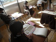 1年生が算数で大きな数を学習していました。日常生活の中では普通に100を超える数を口にしていますが、それが具体的にどんな数なのか、絵や図、実物(数え棒など)を使って実際に数えたり、10のまとまりで数えたりと、表し方を考えていました。