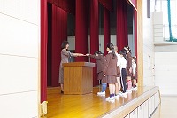 本日は全校朝礼を行いました。その中で,前期学級委員の認証式も行いました。各学級委員を先頭に,クラスのみんなと力を合わせ,助け合い,全員で素敵なクラスを作っていってほしいと思います。
