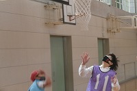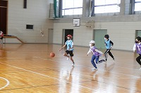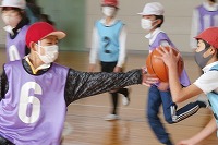 6年生の体育のバスケットボールはチームごとにリーグ戦を行っています。経験が積み重なるほどに、どう動けばいいのか判断できるようになって積極性が出てきたり、ボールに向かうばかりでなくボールがないところに走り込んだりと工夫できる児童が増えてきます。