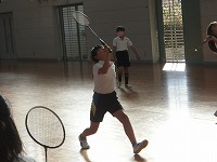 屋内運動クラブは、卓球のシングルやダブルス、そしてバドミントンをローテーションしながら取り組んでいました。