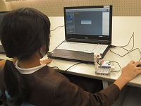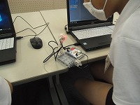 小さい模型を光らせたり動かしたりするプログラミングを行うか、自分で選んで取り組んでいました。