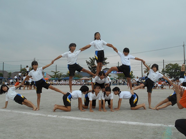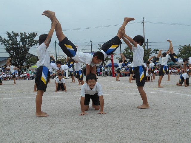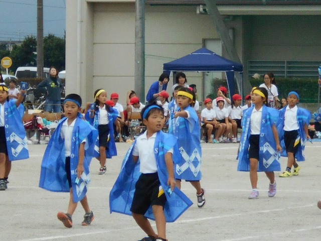 天気がとても心配されましたが、運動会が無事行われました。1・2年生の「ダンシング玉入れ」では、音楽が鳴っている間は、踊り、音楽が止まったら、玉入れをするという新しい種目に挑戦しました。3.4年生の「YOSAKOI ソーラン どっこいしょ」では、迫力のある踊りを披露しました。5・6年生は、組み立て体操で、素晴らしい演技を見せてくれました。白組が優勝しましたが、赤組も最後まであきらめずに、粘り強くがんばりました。