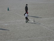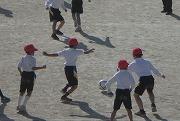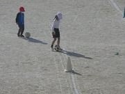 2年生が体育でサッカーに取り組んでいました。まずは一人一人ボールをドリブルします。