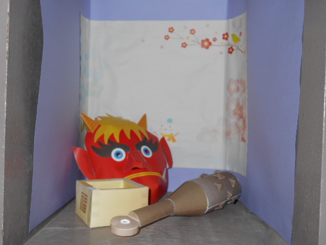 2月になりました。玄関前の掲示も変わりました。節分バージョンです。