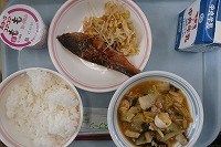 ご飯 牛乳 八宝菜 ホッケの中華トマトソース焼き 大豆もやしのかみかみ和え 桃ヨーグルト