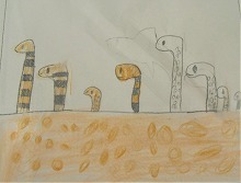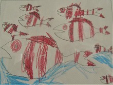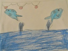 先日の名古屋港水族館への社会見学の思い出の絵です。児童によってそれぞれ描いている場面が異なっているのは面白いですね。
