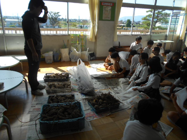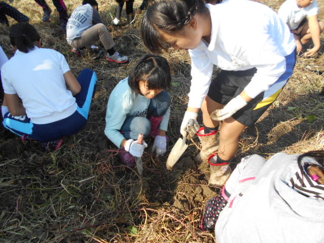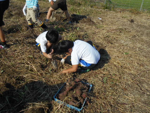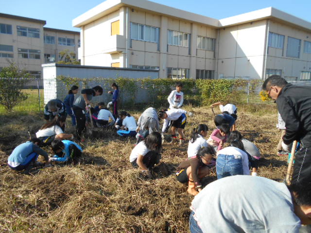 5年生が、西川端ファームのサツマイモ掘りをしました。一生懸命、土を掘り、サツマイモが現れると大歓声。たくさんの収穫がありました。