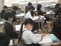 3年生が国語で、「すがたを変える大豆」の話を読んで、気づいたことをメモしていました。