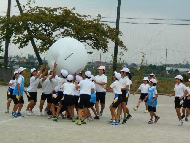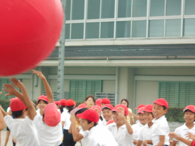 運動会の全校種目、紅白対抗ボール送りの練習をしました。チームワークよくみんな一生懸命でした。