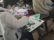 3年生が図工で取り組んでいた切り絵をカッターで切り始めました。3年生が取り組んでいるのは、切るだけではなく、切りぬいたところに裏からカラーセロハンを貼っています。細かいところを切るのも、そこにセロハンを貼るのも大変です。