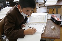 6年生は算数で、これまでに学習したいろいろな計算方法を復習しています。式の加減乗除はもちろん小数・分数や分配法則など、使うことでより速くより正確に計算できるようになります。
