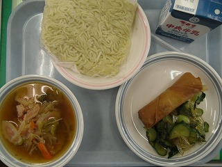 醤油ラーメン 牛乳 春巻き 糸寒天のナムル