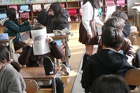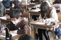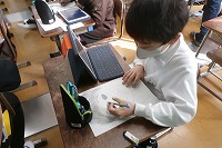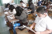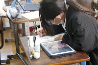 3年生が図工で「自画像」に取り組んでいます。自由に書くとどうしても、漫画のように平面的だったり、大きさや配置が実際とは違っていたりするので、今回はタブレットで自分の写真を撮って、できるだけ忠実に描こうと工夫しています。