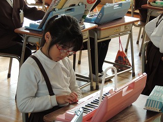 2年生が、音楽で、鍵盤ハーモニカに取り組んでいました。