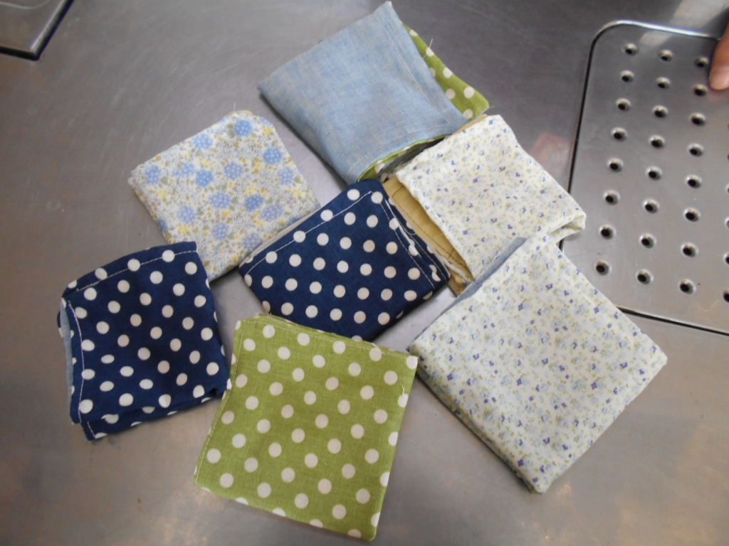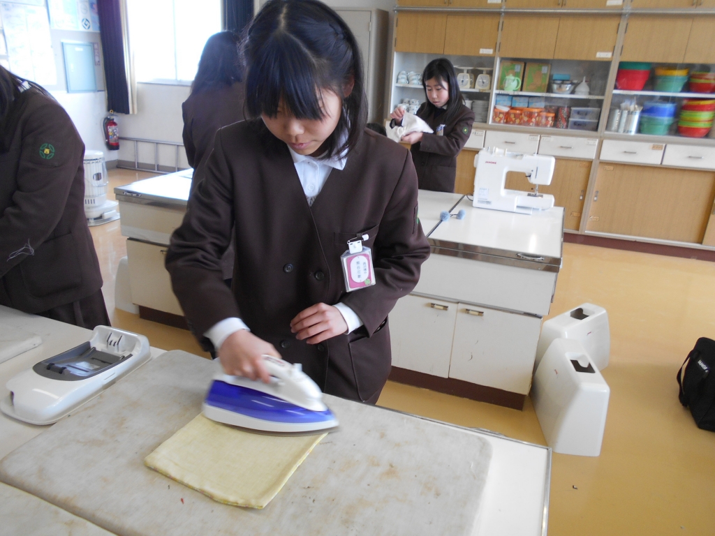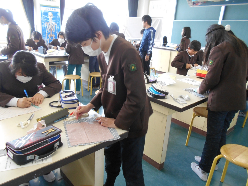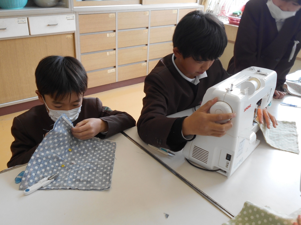 6年生は、ハンカチづくりをしました。これは、お世話になった人へのプレゼントです。ミシンを使って心をこめて作りました。