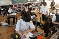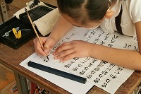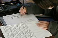 6年生が書写で、仮名文字の学習をしました。社会科や国語でも学習しますが、平安時代に漢字をもとにして生まれた「カタカナ」や「ひらがな」は今では欠かせない日本独自の文化です。子どもたちは、平仮名のもとになった漢字を使って、平安貴族の気持ちになって文章を書きました。何度も使う単語やフレーズは、見本を見なくても書けるようになりました。