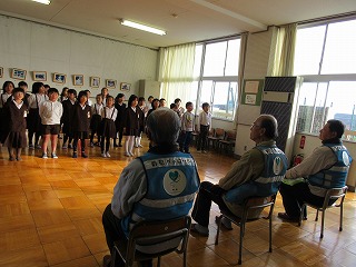 見守り隊さんのおかげで、たくさんのサツマイモが収穫できたそのお礼にと、2年生が手紙を書き、渡しました。「ビリーブ」の歌も聞いてもらいました。「めでたし、めでたし」といいタイミングでつぶやく子もいて、ほのぼのと温かい空気に包まれました。