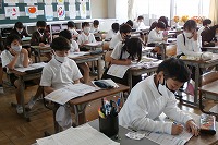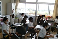 5年生が音楽で「鯉のぼり」の歌を聴いて、歌詞の語句について考えていました。