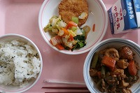 愛知県の食育推進計画では、学校給食を活用した地産地消への理解促進を進めています。地産地消とは、その地域で生産された農林水産物を、その地域で消費することを通じて、消費者と生産者が互いの距離を縮めようとする取り組みのことです。今回は、愛知県産の白菜、愛西市産の人参を使って和え物を作りました。他には、愛知県で作られている豆味噌を使った味噌おでんを作りました。