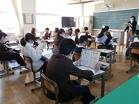 5年生は算数で、基準をもとにした考え方の学習をしていました。いろいろな数について、ある数を基準にして、どのくらい多いか少ないかという見積もりを立てて考えます。