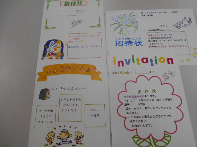 ICT支援員さんがみえました。1・3年生が、コンピュータを使って学習しました。1年生は、1年生の思い出の記録を完成して印刷できた子もいます。3年生は、6年生を送る会の招待状を作りました。