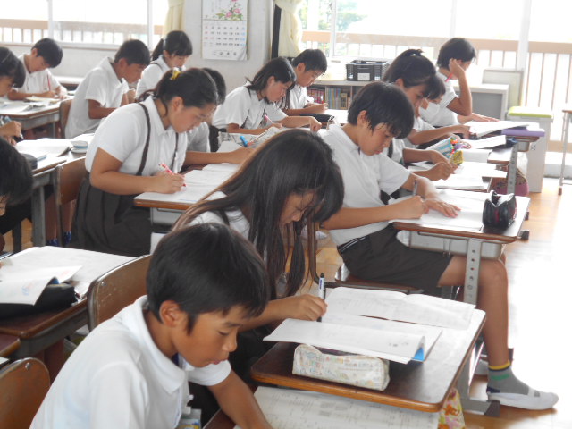 教室では、日誌の答え合わせをしたり、夏休みの課題の確認をしたりしました。