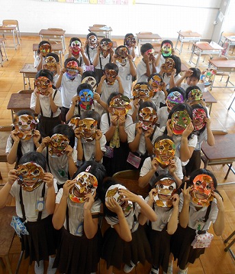 たくさんの落ち葉の仮面です。どれが誰だかわかりますか?