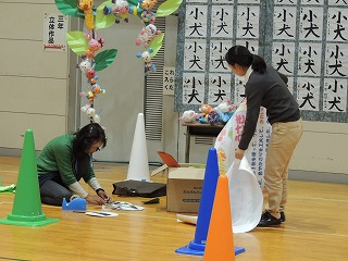 本日、児童のみなさんが帰ってから、先生たちは作品展の展示物の最後の仕上げを行いました。少しでもよい展示の仕方を考え、これでOKとなるまで、先生たちみんなで時間をかけて準備しました。