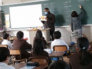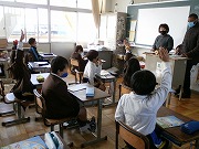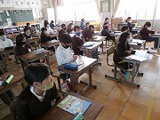 3年生が英語でクイズを作っていました。今まで学習してきたいろいろな英単語について、英語のヒントを3つ作ります。自分の言いたい言葉について色や形、大きさなどの特徴を捉えて、「これは三角形です」とか、「これは白と黒です」のようにヒントを考えます。