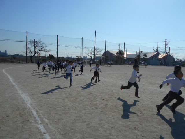 とても暖かい日になりました。業間ジョギングでは、4分間で走る周数も増えてきました。