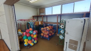 冬休みなので、先生たちで日頃はできない体育館の器具庫の大掃除をしました。すべての器具を出し、中をきれいに掃除して再びしまいます。もう使わなくなっているものは処分し、壊れているものは修理します。すべてのボールの空気も入れなおしました。