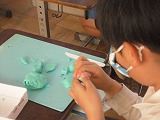 3年生が図工の時間に、粘土で想像の街を作っていました。さすが3年生なので、小さいもの、細かいものを指先で工夫して作っていました。