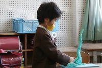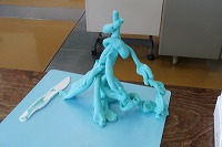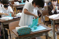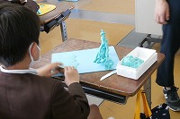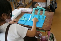 3年生が図工で、粘土のタワーを作っていました。細長く高いタワー(塔)を作ろうとするのですが、あまりに細すぎると重さに負けて曲がったり倒れたりしてしまいます。そこで、下の方を太く重くしたり、薄い板を丸めて竹のような管にしたり、支えをつけたり、1本の塔ではなく3本組み合わせたりと、いろいろ工夫していました。