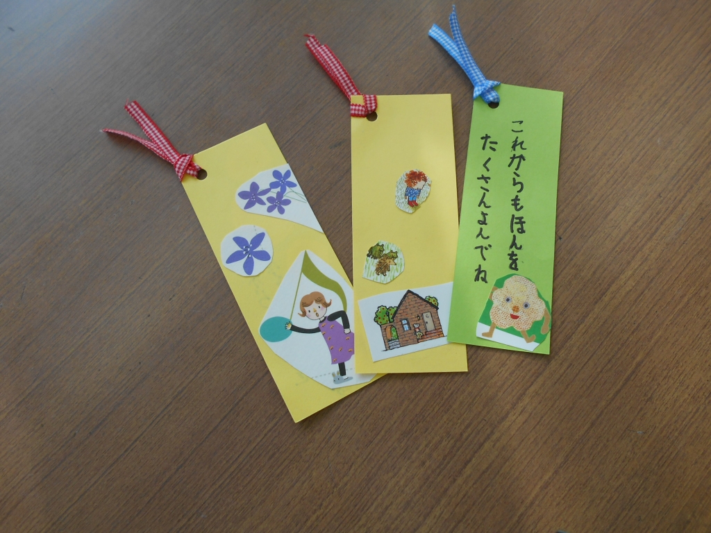 図書委員会は、1年生にプレゼントするしおりを作りました。