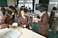 5年生が理科で、物のとけ方について学習していました。食塩を水にたっぷり溶かして、コンロで熱し、どんどん水を蒸発させて後に残る食塩を取り出します。