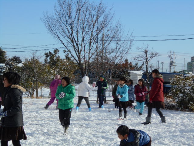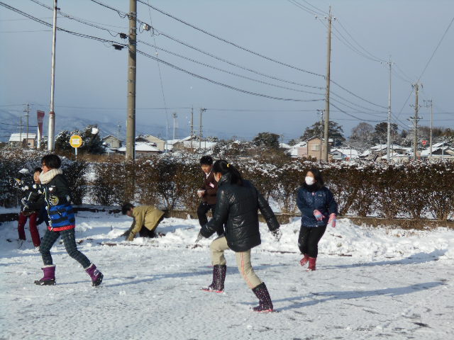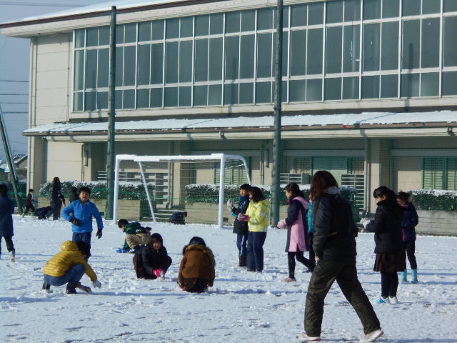 子どもたちは、雪に大喜び。校庭に出て、雪遊びを楽しみました。