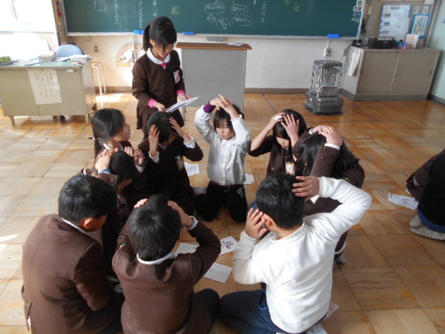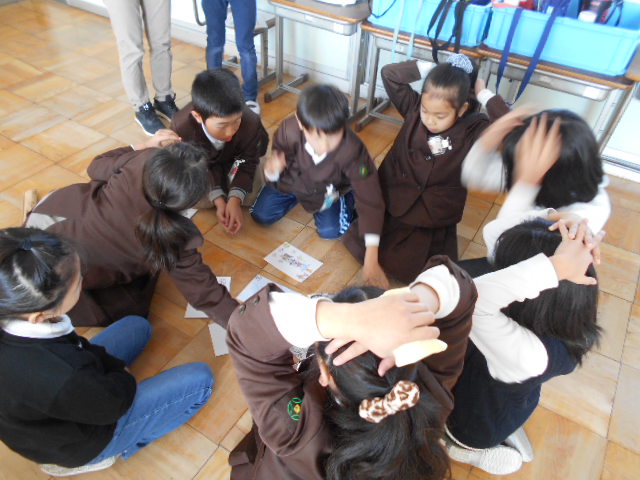 3年生は、国語の時間に自分たちで作った音訓かるたをみんなでやりました。